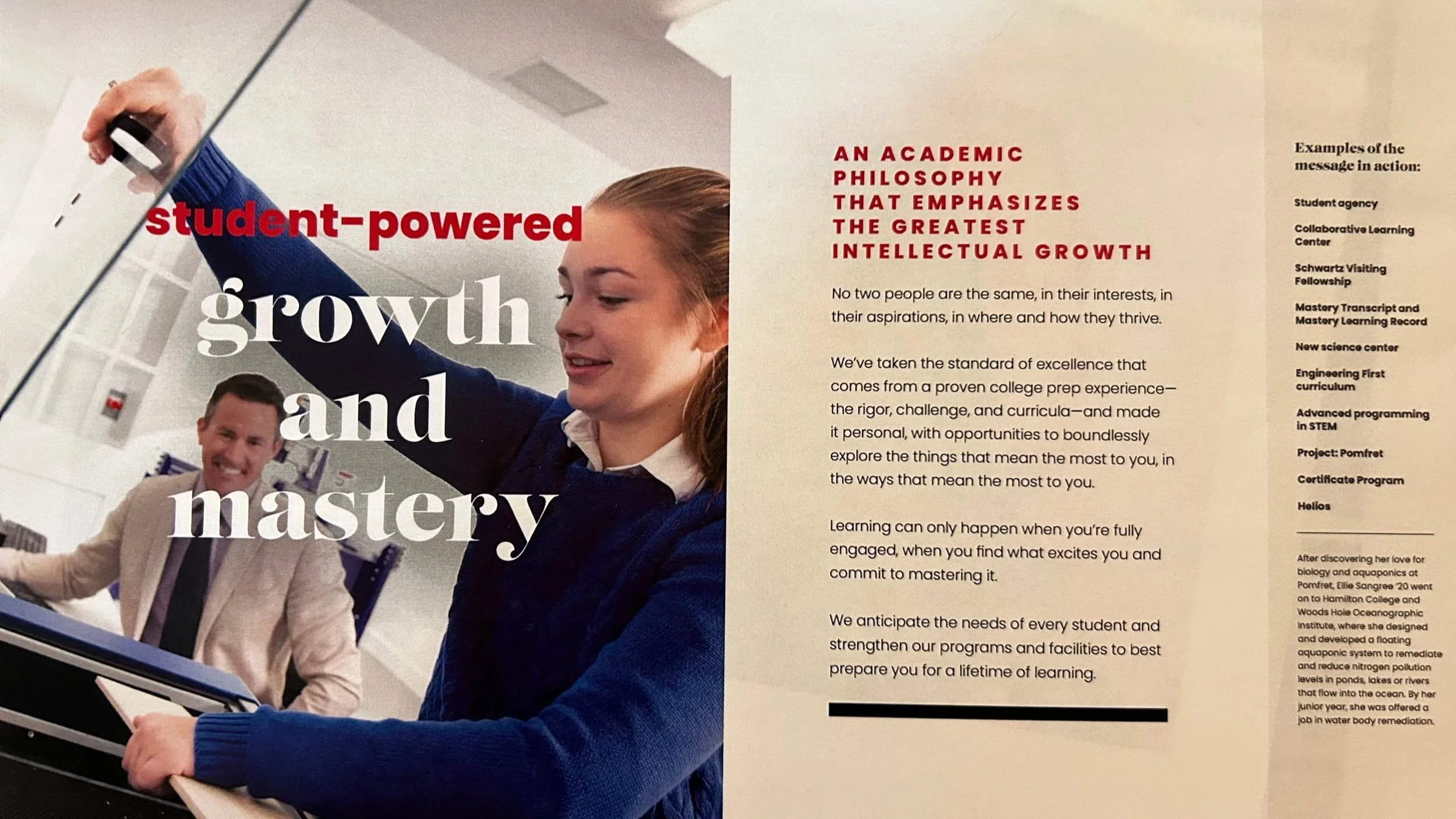 The goal: create a brand refresh for a student-first boarding school in New England. The school’s ethos relied on personalized curricula and wellness. The concept of “human to human” was created to emphasize the unique learning experience and academic philosophy that Pomfret provides, where students are not educated based on a standardized test, but rather guided in relation to their personal goals, strengths, and interests.